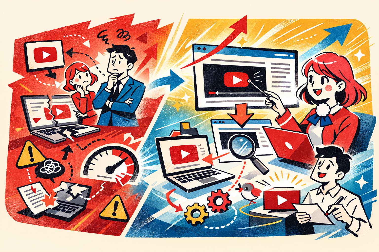 YouTubeは“視聴行動”で伸びやすく、サイトは“比較検討”で決まります。ここを混ぜると、両方中途半端になります。
